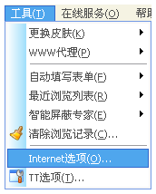 1.打开浏览器,位于顶部的《工具》菜单,点击《Internet选项》。位置如下图所示: